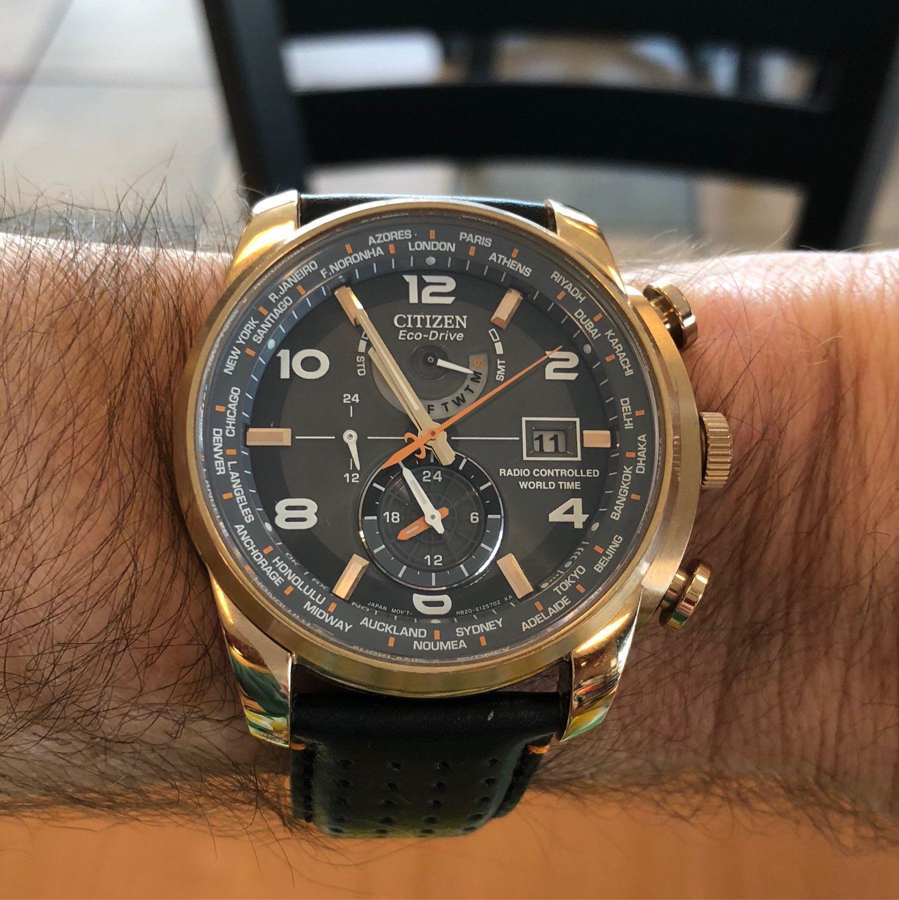 First the first time since buying my series 0 Apple Watch I decided to leave it at home for this trip. Just didn’t feel it justified carrying “one more charger”. So analog it is (this is a solar powered watch that syncs to the atomic clock signals).