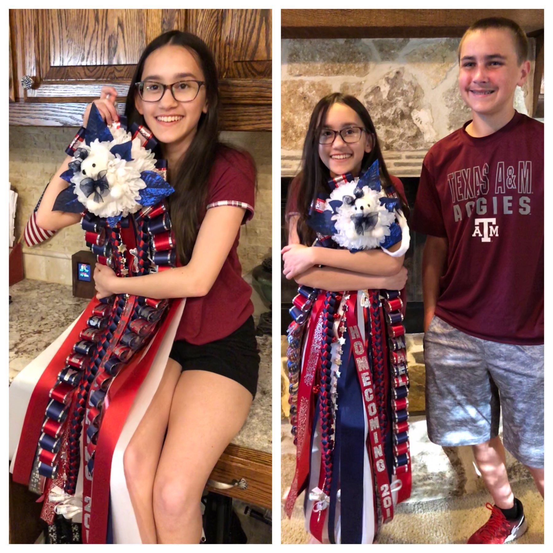 Our 14 year old daughter decided she wanted to go to the freshman homecoming dance. So she asked a guy to take her 😂. We had no idea these giant mums were a tradition these days. It’s nearly as big as she is! All parties pictured here. 📷