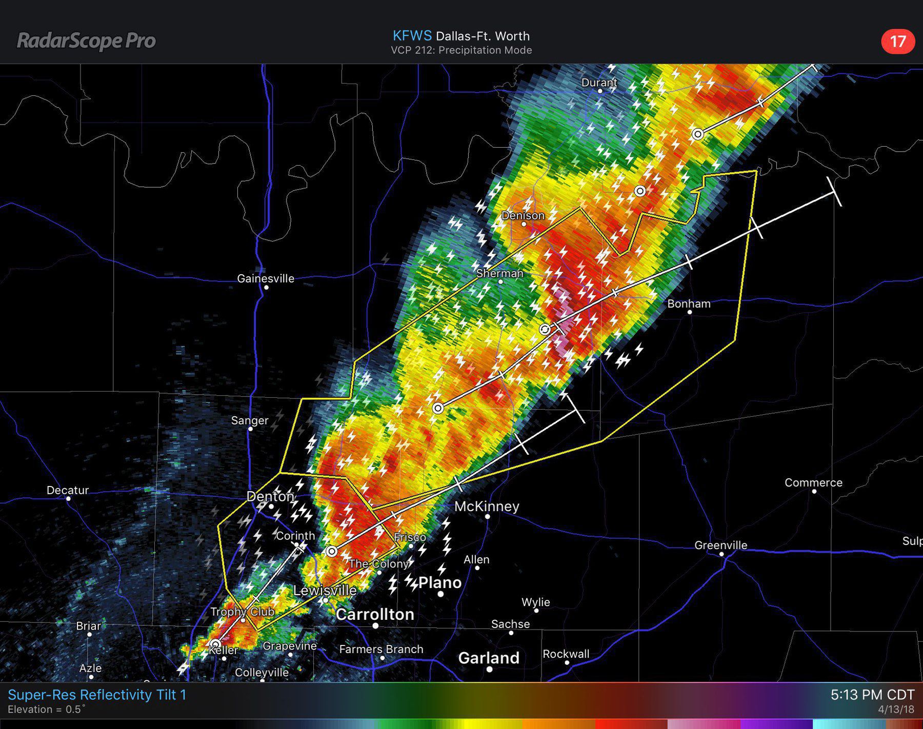 This line of storms is no joke. Also h/t to @radarscope and @rosskimes for helping keep us all safe.