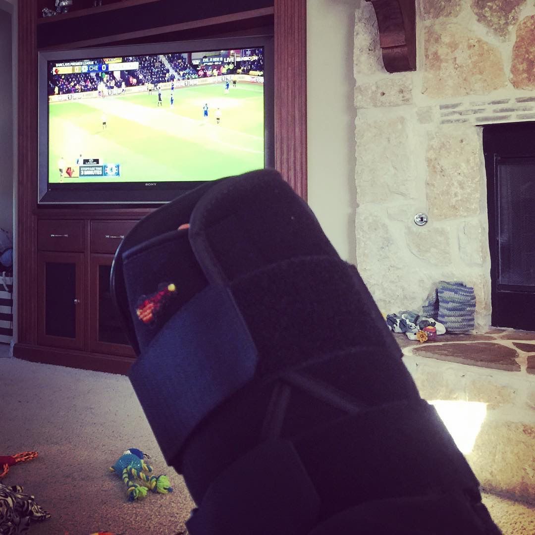 Foot in boot, my footwear for the next 6 weeks. In other news, sleeping in a recliner is over-rated.