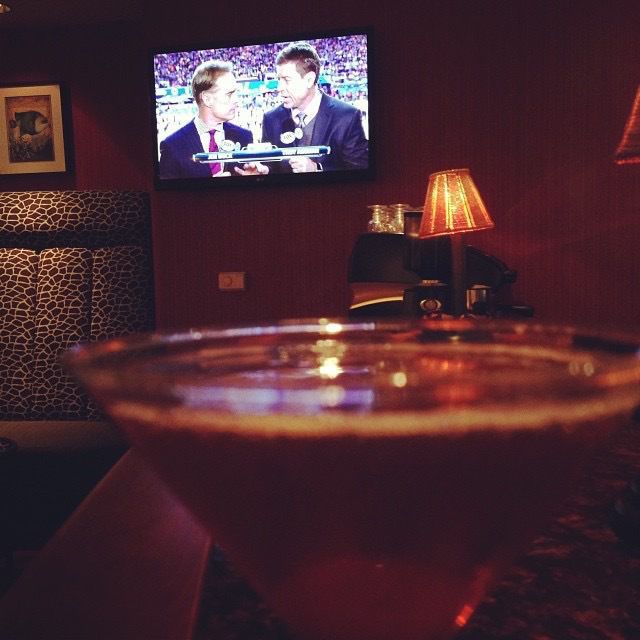 A manhattan and the Super Bowl. Wish I could watch it with my family.